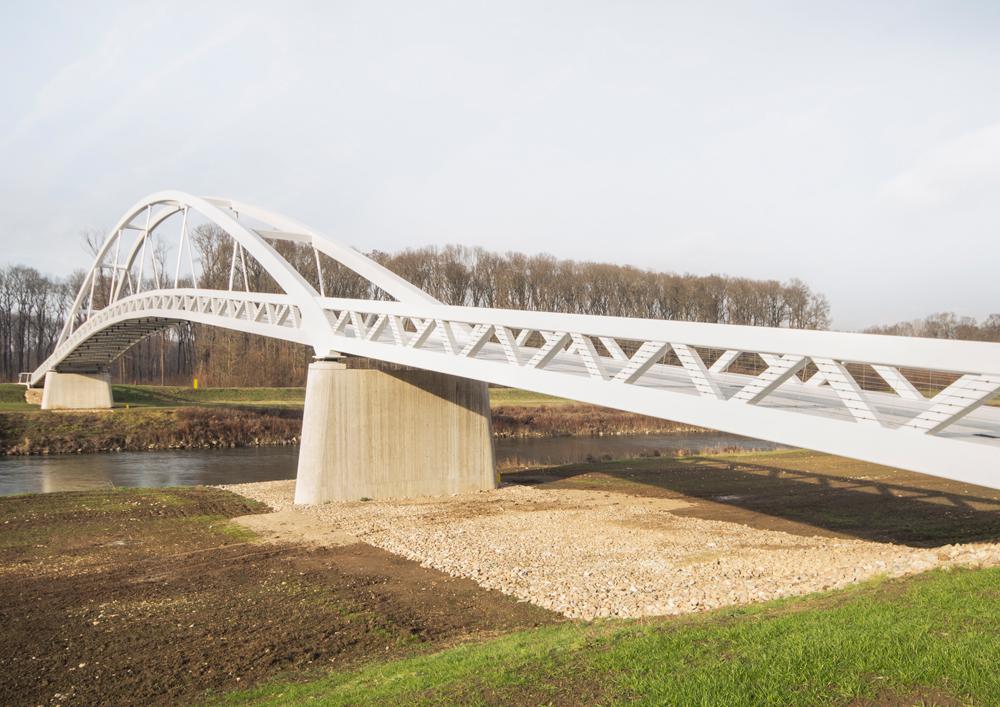 V rámci stavebných objektov sa zriaďovali prístupové cesty SO 000 Ostatné požiadavky na objektoch SO 102 Úprava pravostrannej hrádze v hrádzovom km 94,681 až 95,220 a SO 103 Úprava ľavostrannej hrádze v hrádzovom km 94,681 až 95,220 sa zriaďovali násypy až do úrovne plošín pre vŕtanie pilot opôr 01 a 04, súčasne sa razili štetovnice pre piliere P2 a P3. Po príprave plošín začalo vŕtanie pilot DN 640 mm na českej a následne aj slovenskej strane. Po navŕtaní pilot odšramovaní hláv sa zriadili podkladné betóny a začali sa práce na základoch a pilieroch P2, P3 a v súbehu sa realizovali úložné prahy, krídla, záverné múriky, stienky opôr 01 a 04. Z dôvodu enviromentálneho obmedzenia sa práce na českej strane museli prerušiť od 01.01.2019 do 15.08.2019.