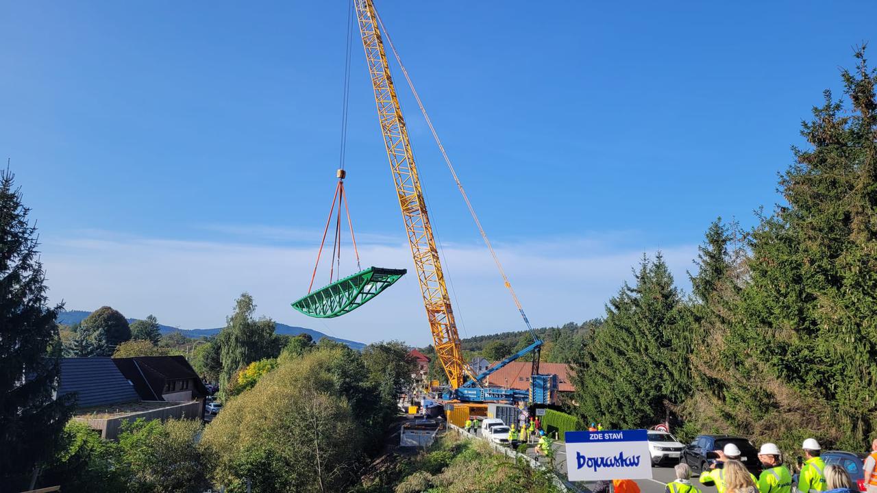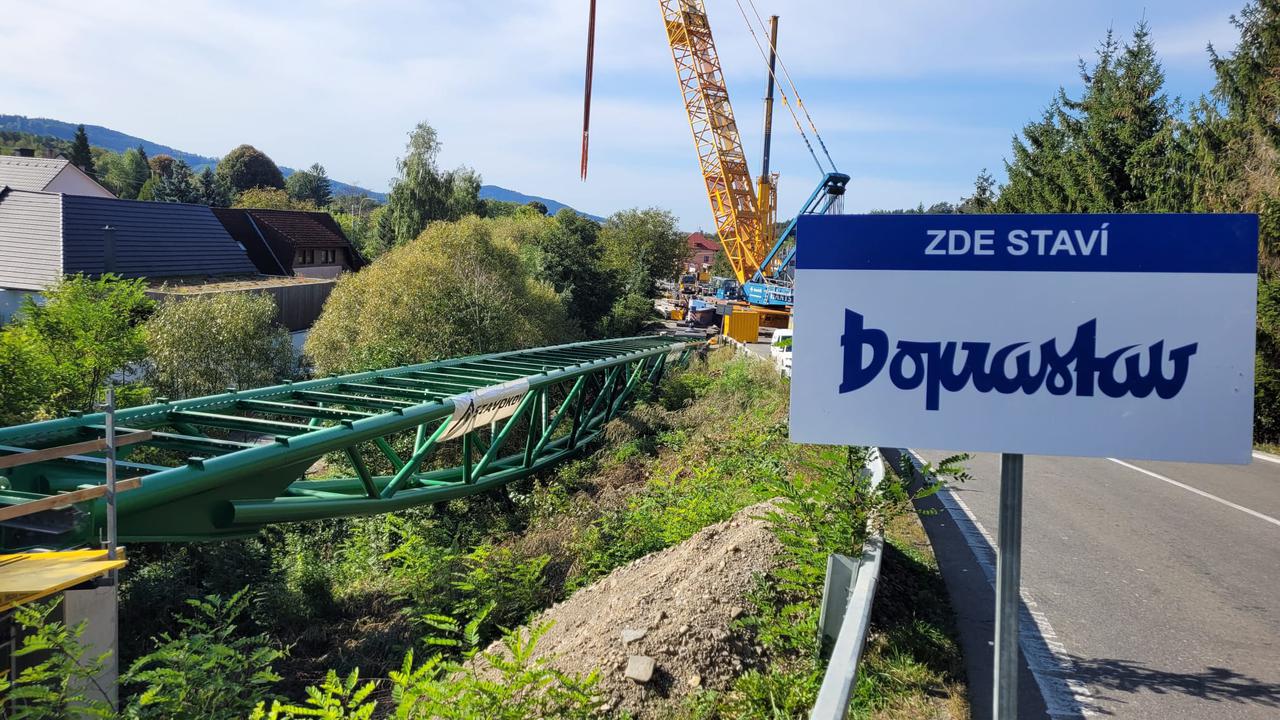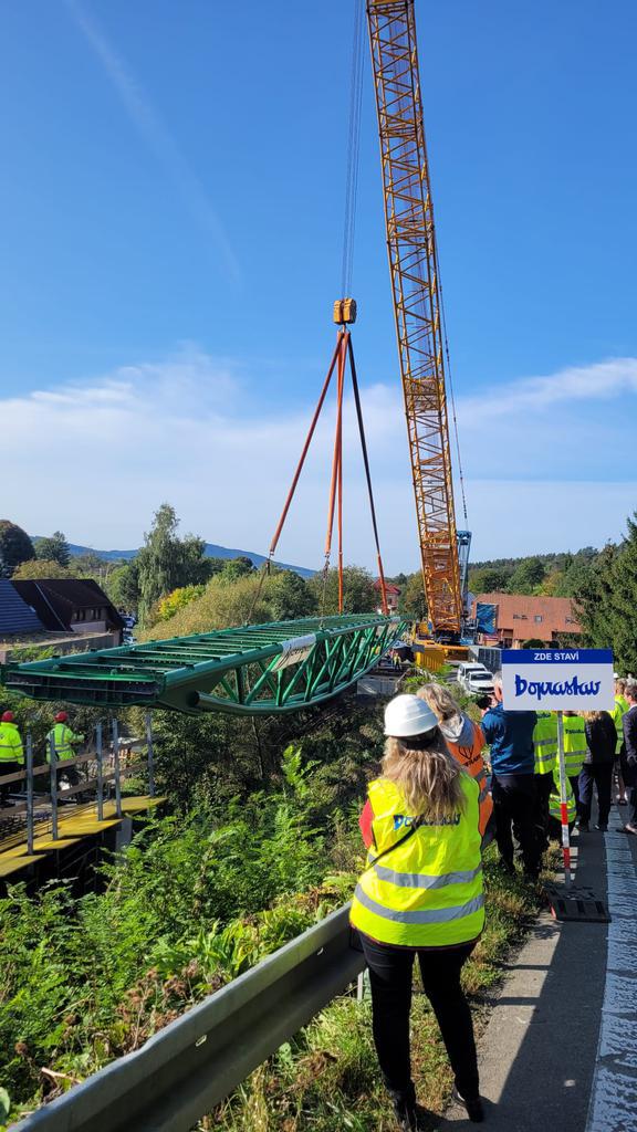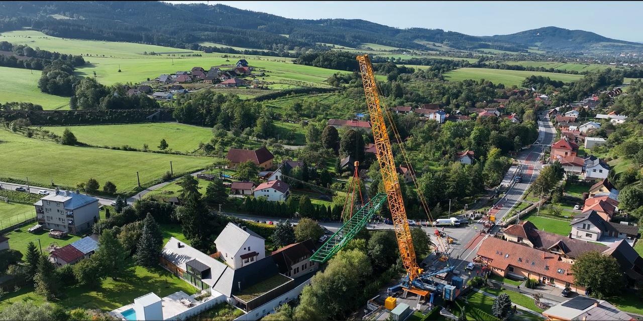 Dňa 5.10.2023 sme osadili 60 metrov dlhú oceľovú lávku – Lávku K5 – medzi obcami Horní Lideč a Valašské Příkazy.
