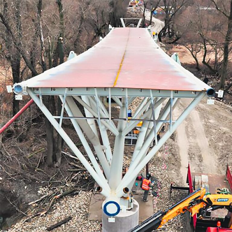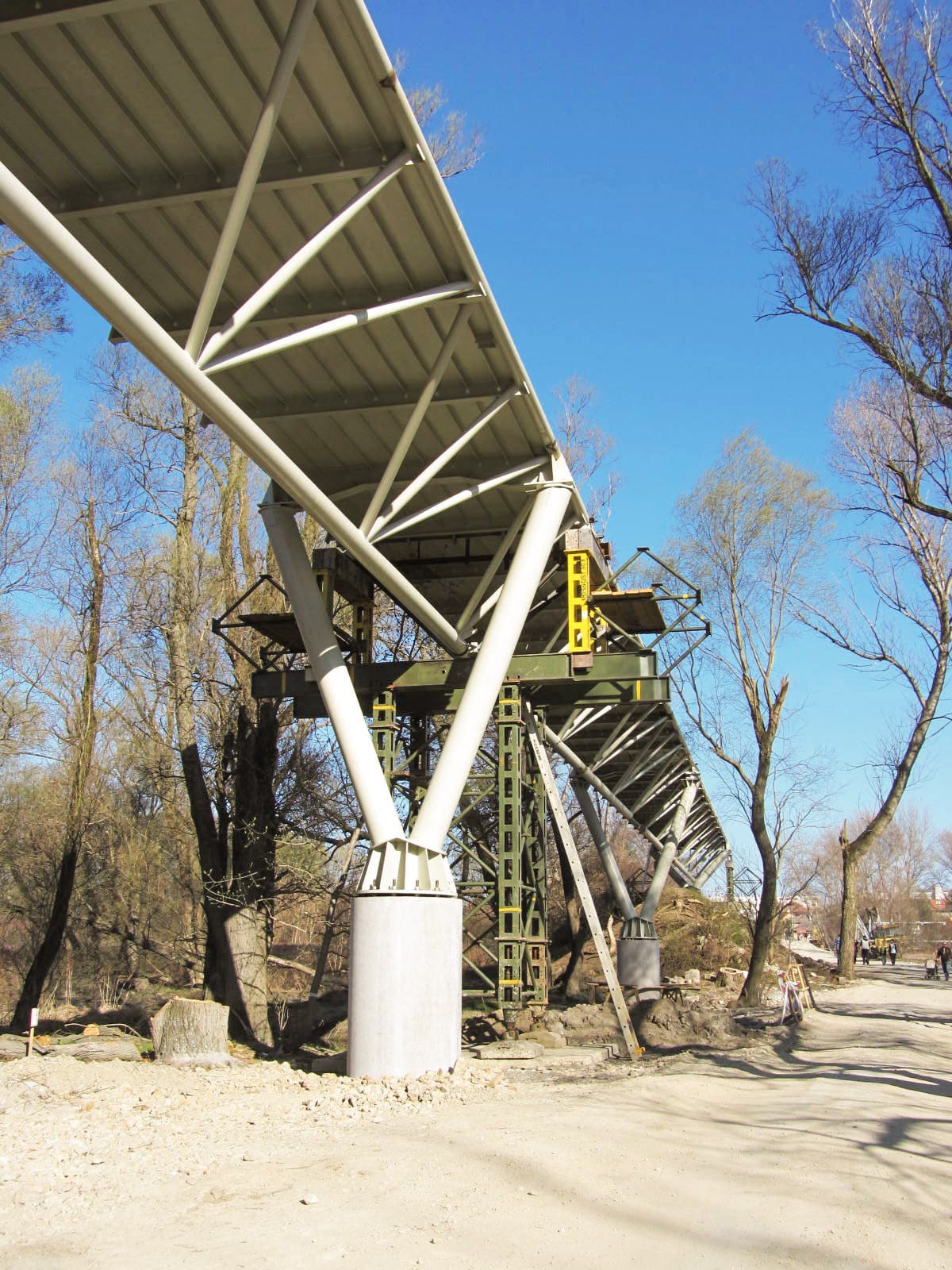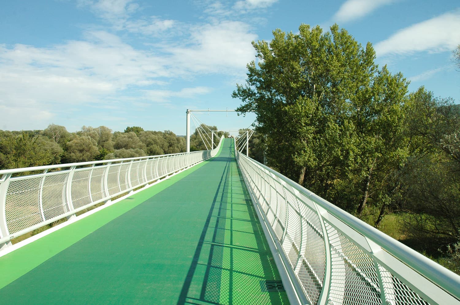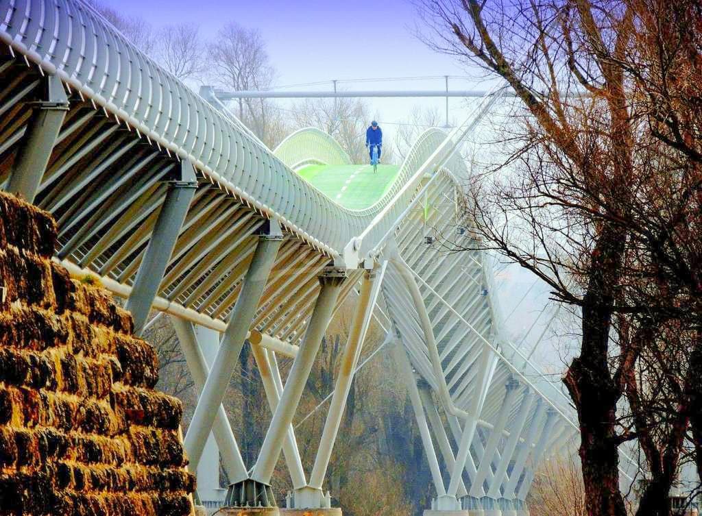 Unikátna bola najmä jeho poloha na historickej trase barokového mosta postaveného na príkaz Márie Terézie v roku 1771, ktorý sme zachovali a premietli do modernej konštrukcie. Most s rozponom hlavného poľa 120 m a celkovou dĺžkou 525 m sa stal obľubenou atrakciou, nielen pre cyklistov, ale aj turistov, ktorí oceňujú jeho technickú čistotu a panoramatické výhľady. Stavba je technicky zaujímavá – základ tvorí trojboký oceľový rúrový trám, pričom druhé pole je zavesené na dvojici pilierov. Celá konštrukcia váži 593 ton. Most sa nachádza 21,5 m nad riekou Morava a 12,3 m nad priľahlým terénom.