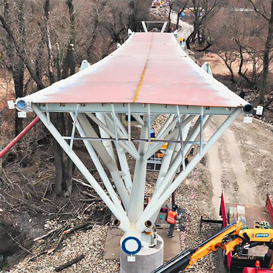 - Základná konštrukcia: trojboký oceľový rúrový trám