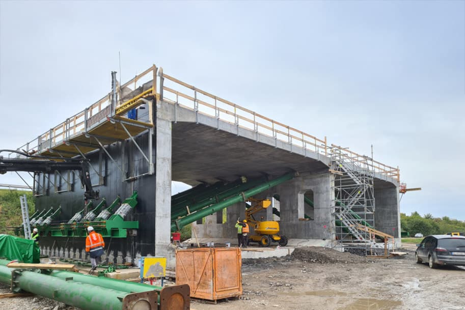 Hlavnou výzvou bolo vybudovať most pod existujúcou diaľnicou D1 pre budúcu diaľnicu D4 s minimálnym obmedzením dopravy – obmedzenie premávky na každý jazdný pás nám trvalo len 6 dní. Kľúčovým riešením bola predbežná výstavba monolitickej rámovej konštrukcie mimo telesa diaľnice, ktorá sa následne zasunula do finálnej polohy pomocou unikátnej švajčiarskej technológie APS – Air Pad Sliding, umožňujúcej posun 36 m za približne 2,5 hodiny. Každý most bol zdvihnutý 16 hydraulickými lismi a presunutý horizontálnymi lismi po vopred pripravených klzných dráhach.