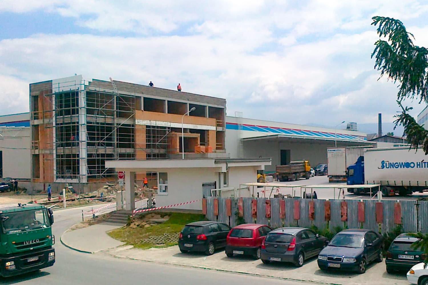 Druhá etapa výstavby výrobného komplexu Sungwoo Hitech patrila medzi naše významné projekty v období, keď sme v Doprastave dosahovali historicky najvyššie ročné výkony.