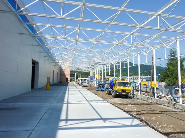 Priemyselný areál Sungwoo Hitech sme v tejto etape rozšírili o novú výrobnú halu s pôdorysom 100,7 x 100,7 m. Objekt je výnimočný integrovanou trojpodlažnou technicko-prevádzkovou časťou, ktorá poskytuje zázemie pre administratívu, hygienické a sociálne priestory. Nosnú konštrukciu tvorí železobetónový skelet s veľkorysými osovými vzdialenosťami 10 a 25 m, navrhnutý tak, aby umožnil flexibilné výrobné a skladové využitie. Pri výstavbe sme uplatnili vlastné prefabrikáty z PREFA Doprastav, čo nám prinieslo presnosť a efektivitu pri montáži.