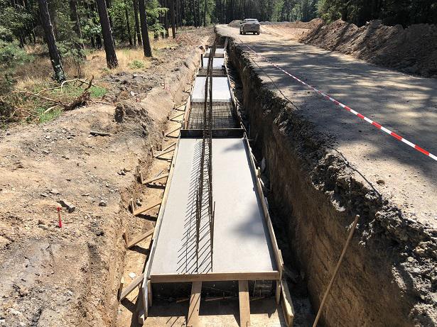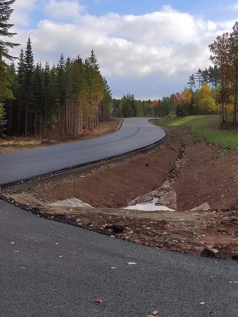 Nové směrové vedení trasy přes lesní pozemky si vyžadovalo provedení úprav nově budovaného zemního tělesa (viz VCP).